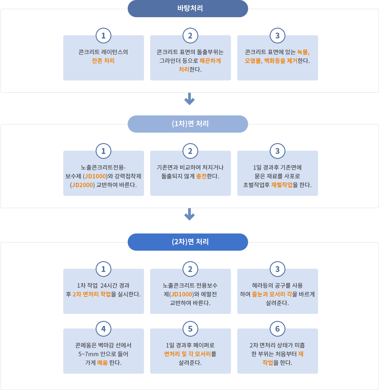 JD면처리 시공순서